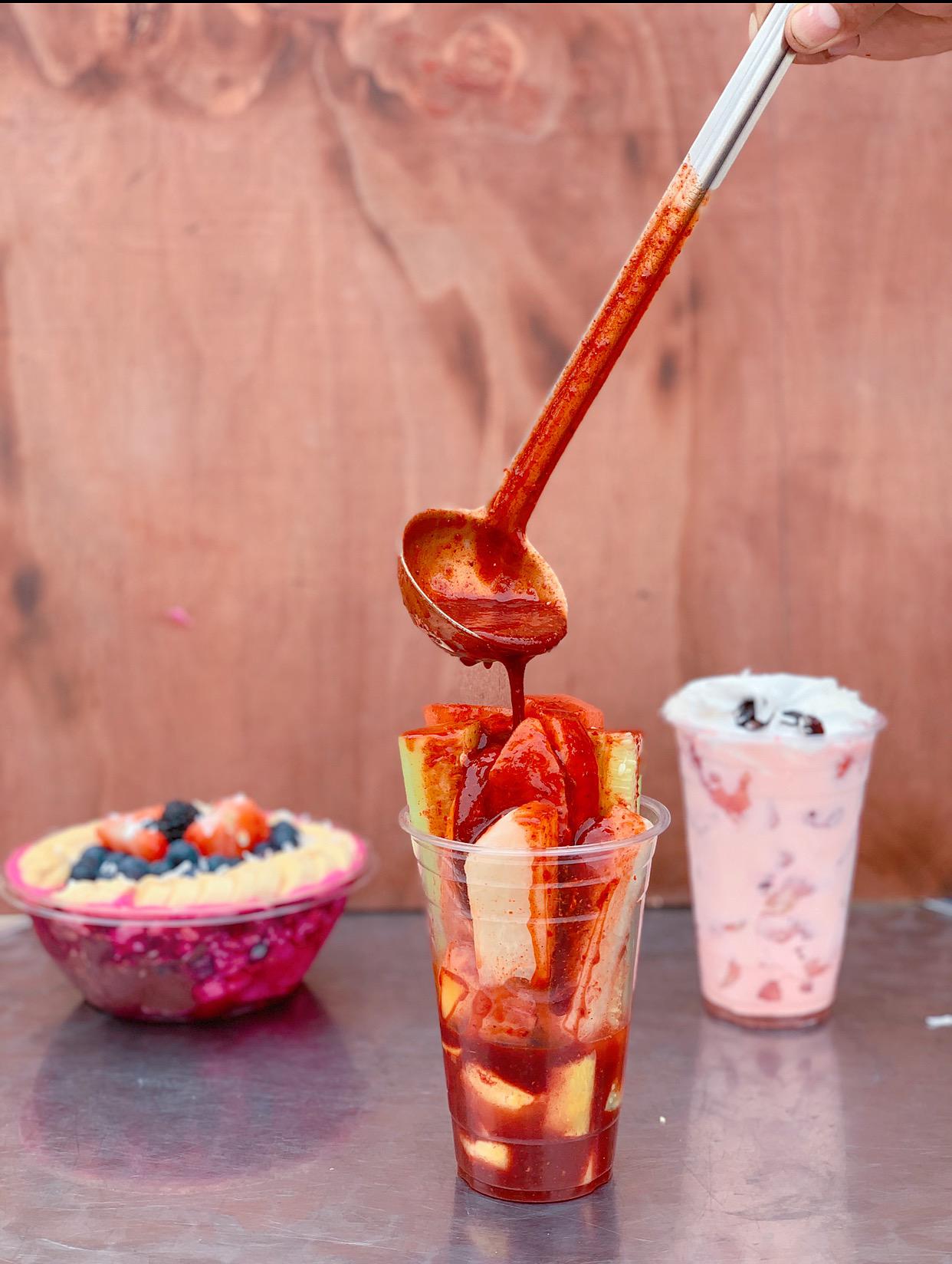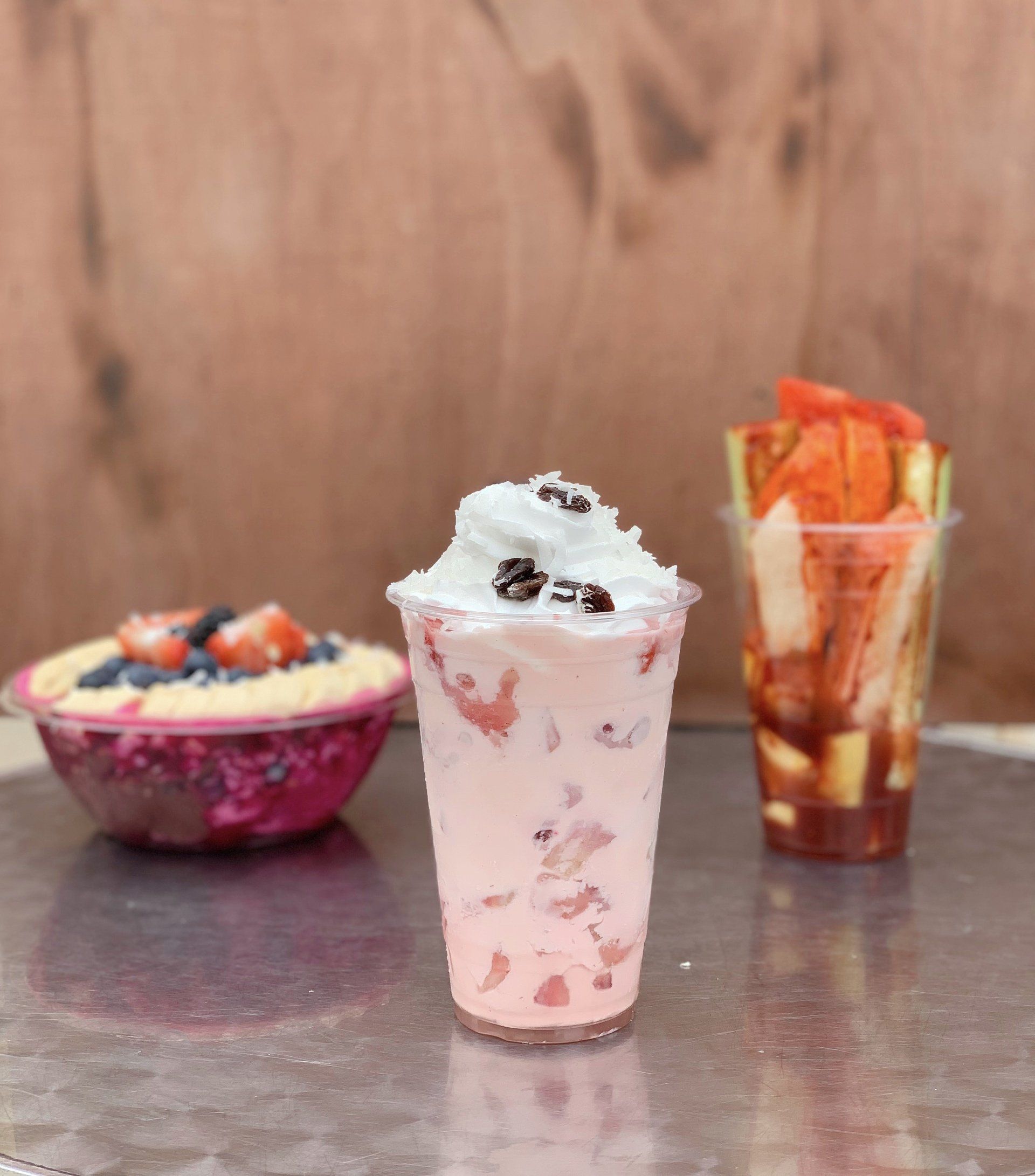 Need a refresh after shopping? You choose the toppings on your Acai Bowl, made with fresh fruit, that we prepare especially for you! Like tangy & sour? Try our Chile Lime Fruit Cup! Finally, treat yourself to our Strawberry & Cream cup made with fresh strawberries!